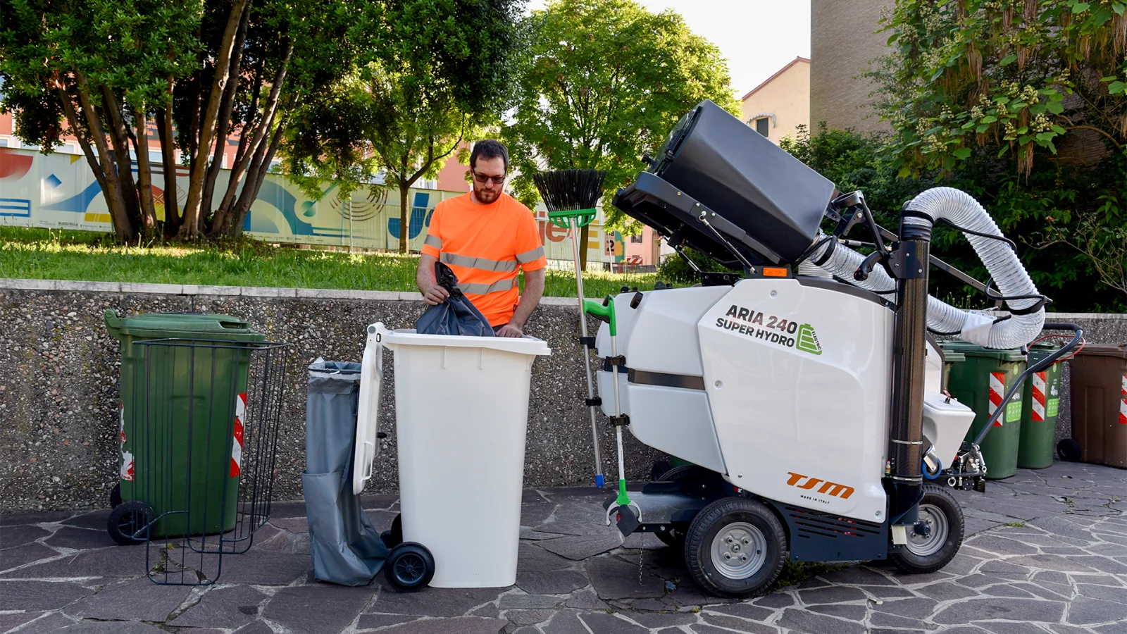 ה-ARIA 240 של TSM הוא שואב אשפה רחוב חשמלי לחלוטין, שקט וללא פליטות, המאפשר ניקיון יעיל ובר־קיימא בכל סביבה עירונית.