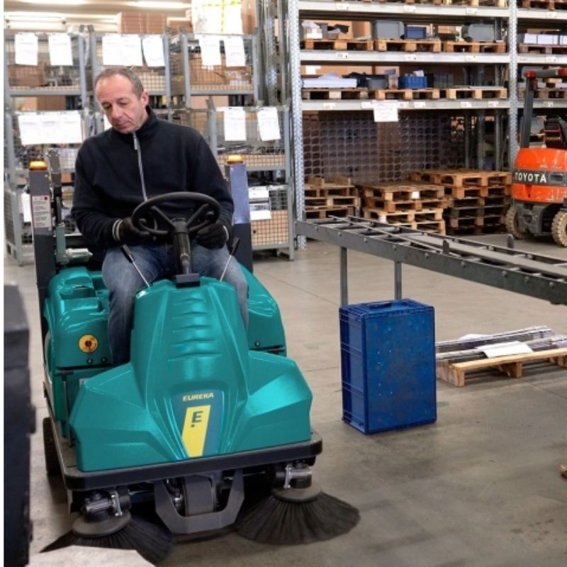 מטאטא תעשייתי לרכיבה בעל גוף קומפקטי ויכולת פריקה של מיכל הפסולת לגובה. הוא מתאים במיוחד לניקוי שטחים בינוניים-גדולים, עם דגש על נוחות הפעלה וביצועים גבוהים.